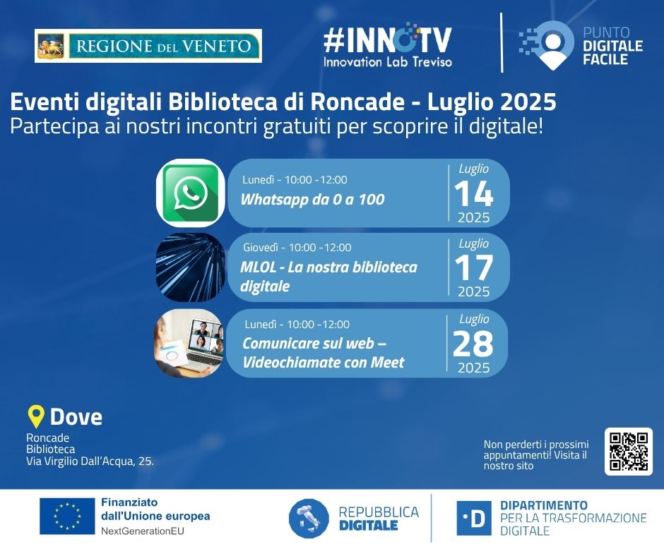 Eventi digitali a Roncade – Biblioteca Comunale – Luglio 2025