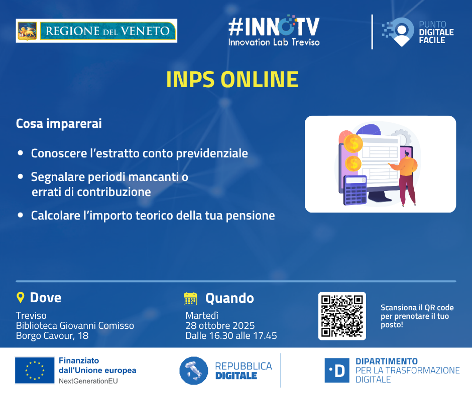 Martedì 28 ottobre 2025, dalle 16.30 alle 17.45, la Biblioteca Giovanni Comisso di Treviso (Borgo Cavour, 18) ospiterà un nuovo appuntamento della Palestra Digitale.Un evento gratuito dedicato a chi vuole imparare a gestire in autonomia i propri dati previdenziali attraverso i servizi online dell’INPS. Perché partecipare all’incontro INPS Online Capire la propria posizione previdenziale non […]
