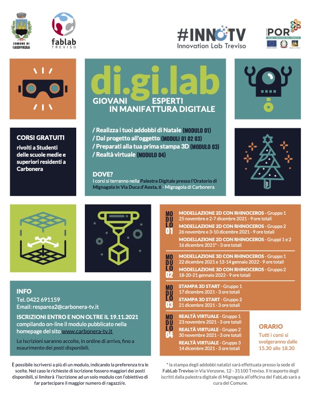 INNOTV ospita corsi digitali gratuiti per ragazzi delle scuole medie e superiori presso la Palestra Digitale di Mignagola (Circolo NOI), organizzati in collaborazione con FAB.LAB di Treviso. Una bellissima occasione per accrescere le competenze nella progettazione e realizzazione di oggetti 2D e 3D, nonché nell’utilizzo della realtà virtuale e visitare la sede di FAB.LAB. Per […]