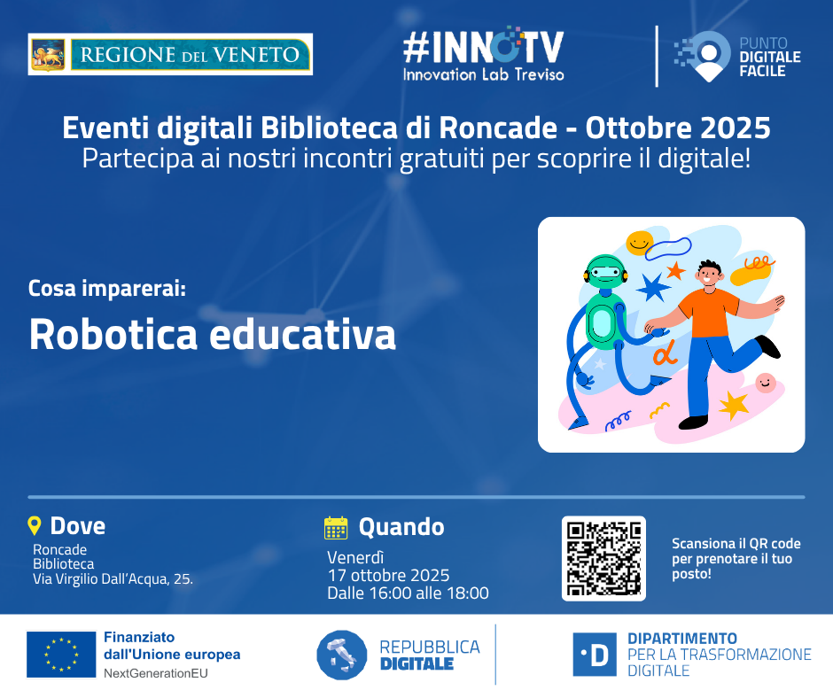 La Biblioteca di Roncade ospita un incontro dedicato alla robotica educativa, un laboratorio gratuito e aperto a tutti per avvicinarsi in modo semplice e creativo al mondo della tecnologia e della programmazione.