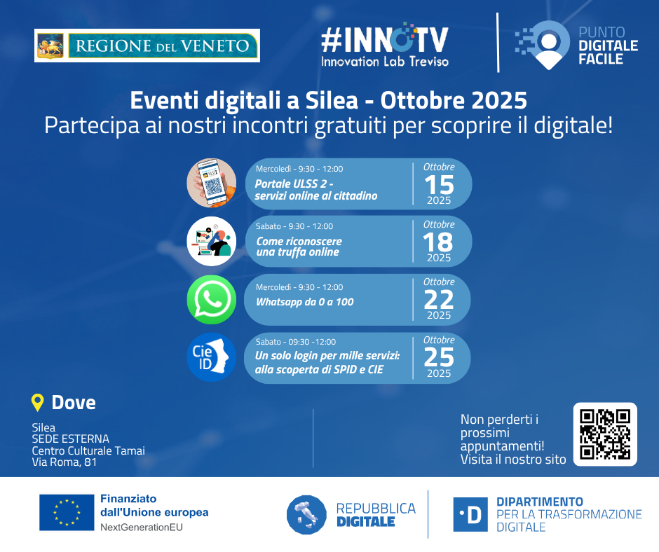 Nel mese di ottobre 2025, la palestra digitale di Silea propone un nuovo ciclo di incontri gratuiti dedicati a tutti i cittadini che desiderano migliorare le proprie competenze digitali e imparare a utilizzare in sicurezza gli strumenti online.