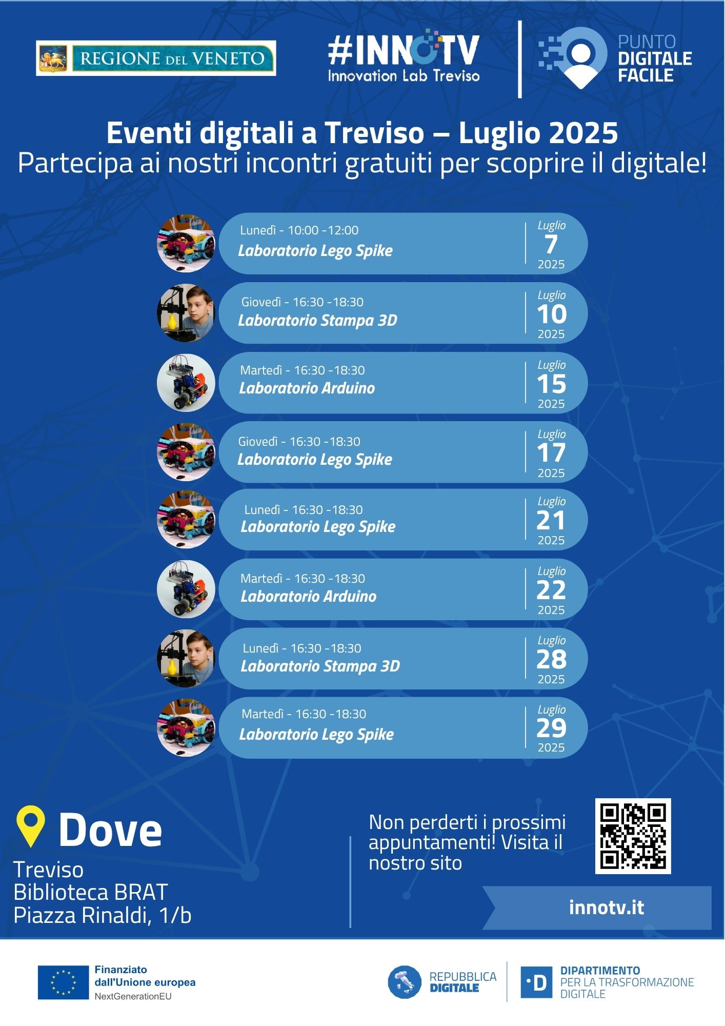 Anche i più giovani protagonisti dell’estate digitale a Treviso: alla Biblioteca BRAT torna a luglio il ciclo di laboratori gratuiti dedicati al mondo della tecnologia e della creatività digitale. Un’occasione unica per scoprire il funzionamento di robot, stampanti 3D e microcontrollori, imparando attraverso il gioco e l’esperienza pratica.