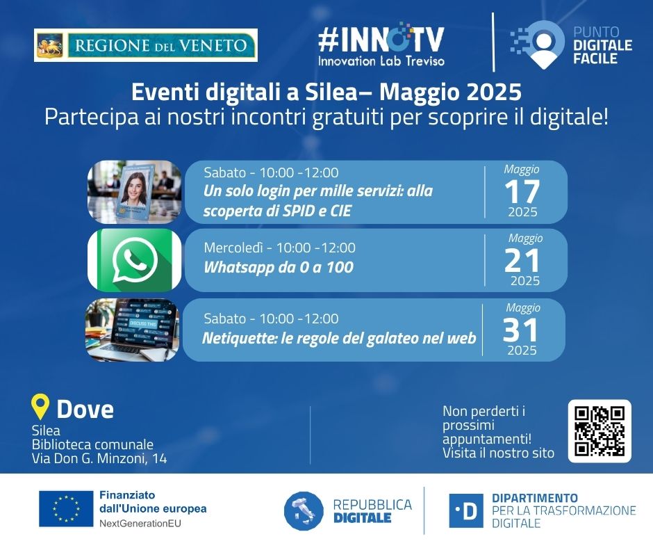 Anche a Silea prosegue l’attività della Palestra Digitale con un nuovo ciclo di incontri gratuiti dedicati a tutti i cittadini che desiderano acquisire competenze digitali utili nella vita quotidiana.
