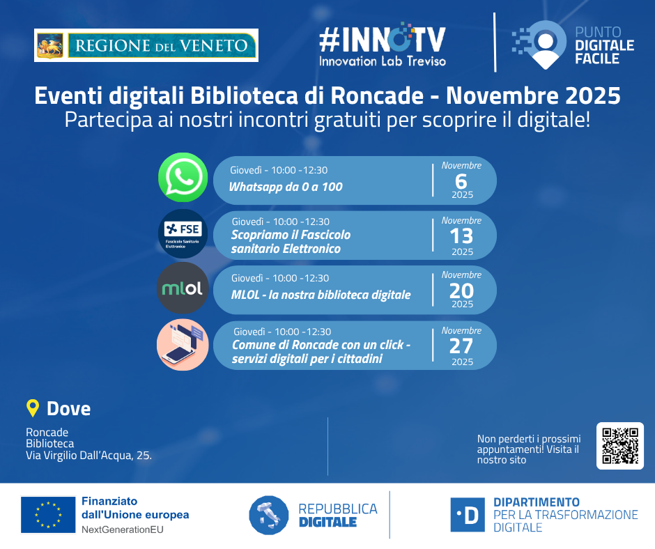 Eventi digitali alla Biblioteca di Roncade – Novembre 2025